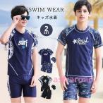水着 男の子 上下セット 2点セット キッズ スイムウェア 半袖 ショートパンツ 迷彩柄 カモフラージュ柄 ジュニア 男児 子供 幼稚園 海 水泳 春新作