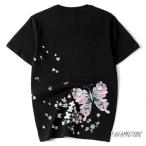 和柄刺繍 半袖Tシャツ メンズ 刺繍蝶 華鳥風月 半袖Tシャツ 男女ペア カップル 男女兼用 ご夫婦 恋人 夏 肌着 リゾート サマー ジュニア