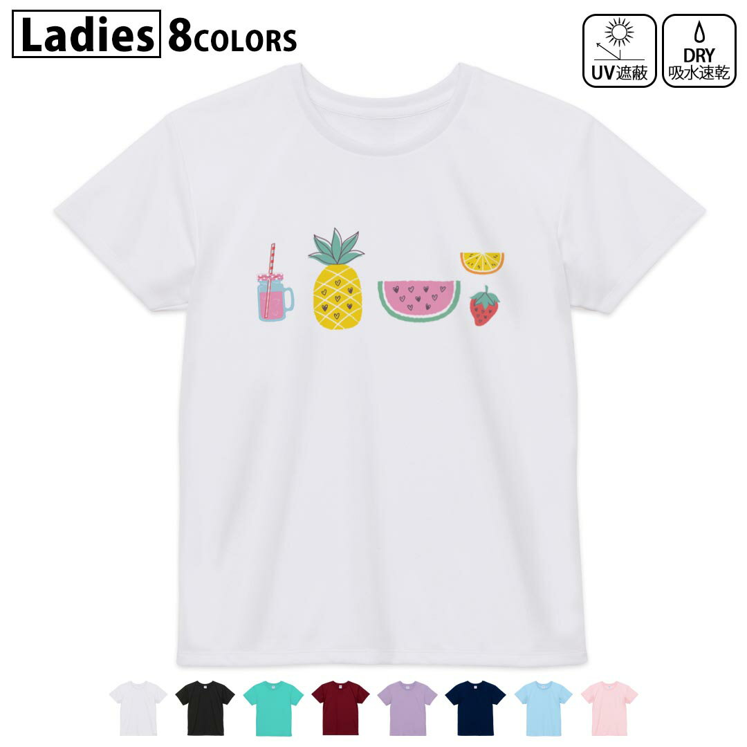ドライTシャツ 吸水 速乾 DRY 選べる8カラー tシャツ レディース スポーツ ゆったり UV対策 デザイン M L Tシャツ ティーシャツ T shirt017812 スイカ パイナップル ジュース