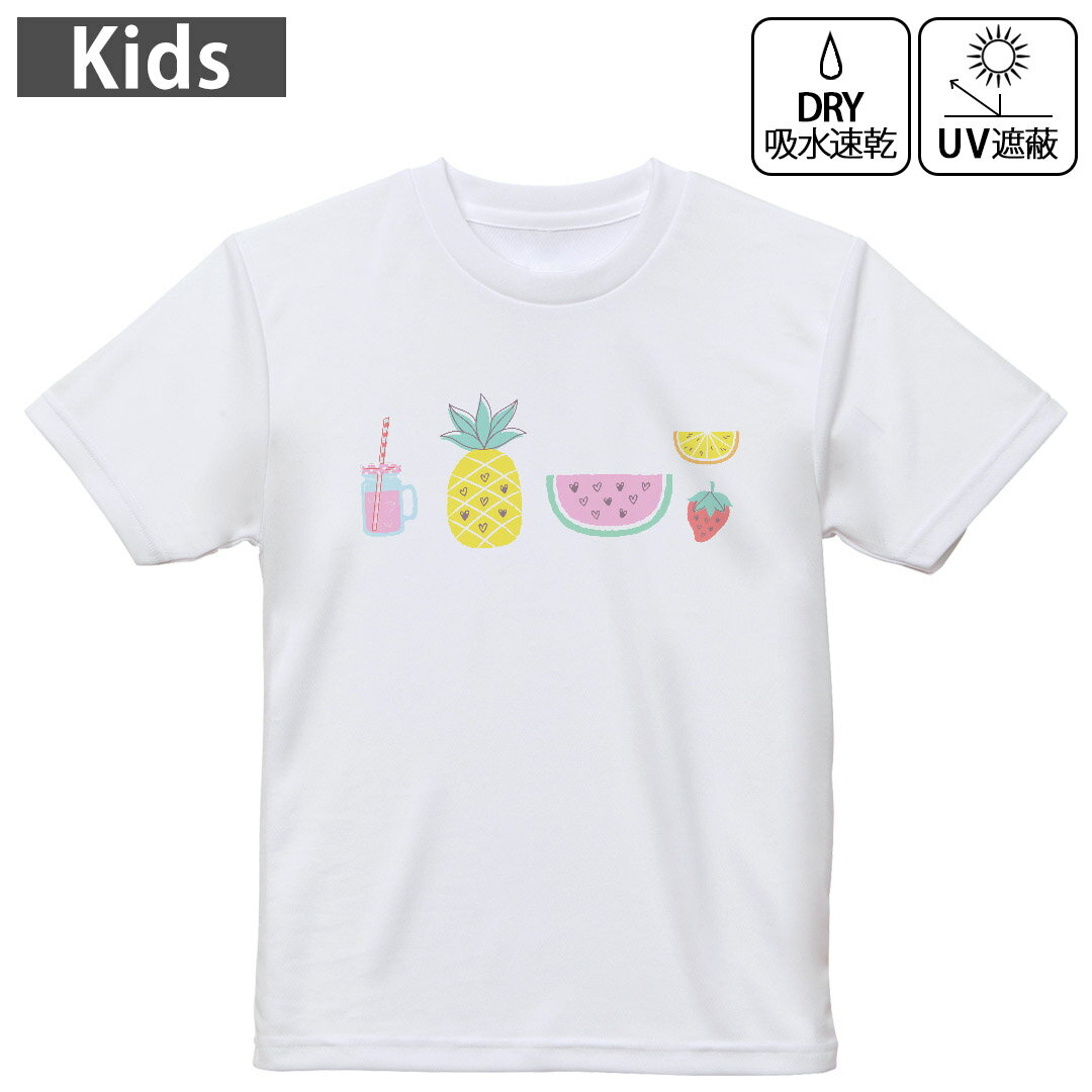 キッズ ドライTシャツ ホワイト 半袖 4.1オンス トレーニング スポーツ ジム 運動会 ドライアスレチック UVカット 紫外線遮蔽 吸水速乾 120 130 140 150 160 017812 夏 summer スイカ パイナップル ジュース