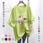 半袖Tシャツ レディース Tシャツ 夏 オーバーサイズ プリントTシャツ クルーネック 半袖 カットソー 爽やか 夏Tシャツ ゆったり 快適 サマートップス