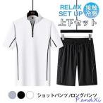 セットアップ メンズ 夏服 半袖 ジャージ 上下セット ロングパンツ サマー 通気 部屋着 接触冷感 涼しい ゆったり トップス Tシャツ