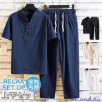 セットアップ メンズ 夏 半袖 ジャージ 上下セット ロングパンツ サマー 薄手 部屋着 接触冷感 ひんやり ゆったり トップス Tシャツ