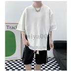 セットアップ メンズ 上下 ジャージ 冷感素材 半袖Tシャツ ハーフパン ルームウェア 涼しい ゆったり 無地 大きいサイズ ジョギング 夏 スポーツ