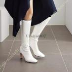 ロングブーツ レディース スクエアトゥ ストレッチブーツ サイドジップ ジョッキーブーツ 厚底 ブーツ 太ヒール 黒 白 春 秋 冬 美脚 ロングブーツ レディース