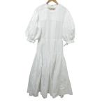 美品 クリーニング済 JIL SANDER ジルサンダー タックプリーツボリュームスリーブロングドレス ワンピース JSPS505106 32 ホワイト レディース 古着 中古
