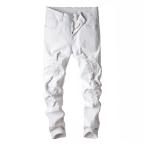 【並行輸入品】メンズデニムリップドジーンズスリムフィットスキニーユーズド加工ストレートストレッチパンツホワイト VooZuGn Men's De