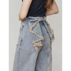ジーンズ デニム デニムパンツ 「SNSで話題!」バックリボンルーズジーンズ レディース