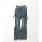 ジーンズ デニム デニムパンツ カットアウトレースアップフレアデニムパンツ レディース