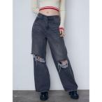 ジーンズ デニム デニムパンツ リップドワイドジーンンズ レディース