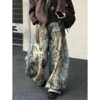 ジーンズ 「Bls」「Bling Leads」ダメージ加工プリントバレルレッグデニムパンツ メンズ レディース
