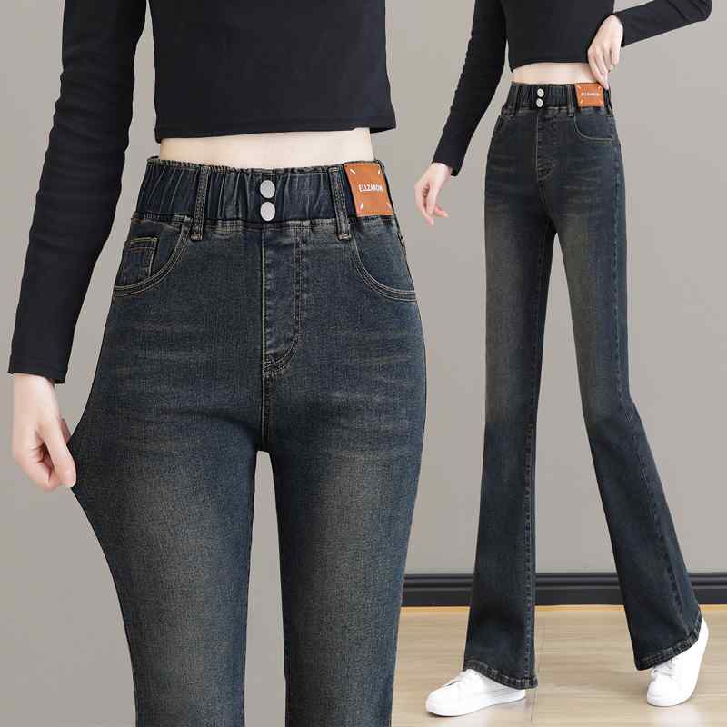 レディース ファッション カジュアル おしゃれ ストレッチ ウエスト ブーツ カット パンツ 大きいサイズ ジーンズ 春夏 ハイウエスト スリム ベルボトム フレアパンツ 夏 服