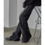 ジーンズ String design color-faded bell bottoms/紐デザイン 色落ち加工ベルボトム メンズ