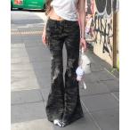 ジーンズ デニム デニムパンツ カモフラ柄ダメージフレアパンツ レディース