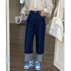 ジーンズ デニム デニムパンツ ロールアップワイドデニムパンツ レディース