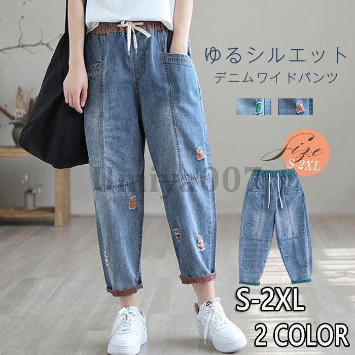 ジーンズ デニム デニムパンツ ロールアップ ワイドデニム レディース