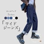 ジーンズ デニム デニムパンツ ロールアップ ワイドデニム レディース