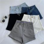 レディース デニム パンツ 夏 ショートパンツ シンプル ジーンズ ズボン ハイウエスト ロールアップ おしゃれ ワイドパンツ ボトムス スリム 半ズボン