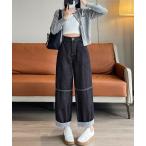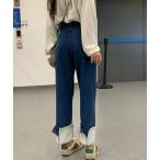 ジーンズ デニム デニムパンツ ロールアップワイドデニム レディース