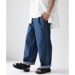 ジーンズ 「MinoriTY」ロールアップワイドデニムパンツ バギーパンツ ストレートデニムパンツ ワイドパンツ メンズ オーバーサイズ スラックスデ