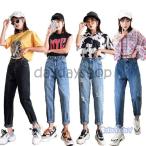 テーパードパンツ レディース デニムパンツ ジーンズ ジーパン切り替え ロールアップ サルエルデニム 体型カバー ボトム