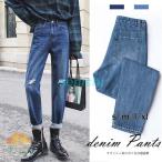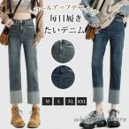 デニムパンツ レディース ロールアップ ジーパン 九分丈 美脚 デニムパンツ ストレート お洒落 ジーンズ レトロ ロール