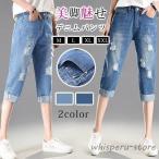 クロップドパンツ デニム レディース テーパードデニム ダメージジーンズ デニムパンツ ロールアップ ジーンズ ジーパン