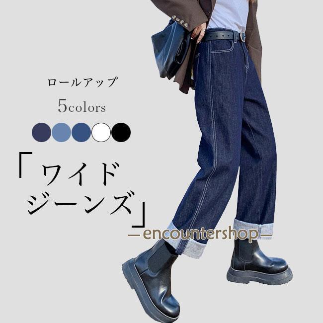 【期間限定10%OFF】ジーパン レディース ロールアップ ワイドジーンズ 九分丈 美脚 デニムパンツ 春 秋 ゆったり 体型カバー ワイドパンツ お洒落 ジーンズ レトロ
