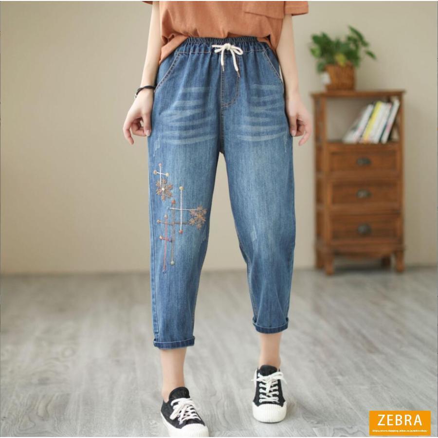 【期間限定10%OFF】デニムパンツ レディース九分丈ジーパン デニムパンツ 春9分丈ジーンズ 夏 ロールアップ花柄ボトムス 森ガール風 ズボン 刺繍パンツ ジーンズ