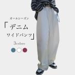 ジーンズ デニムパンツ テーパードパンツ レディース ワイド ボトムス チノパン ロールアップ ウエストゴム 大きいサイズ ゆったり 体型カバー