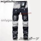 メンズ スキニー ジーンズ パンツロング カジュアル ストリート ジーパン ジーンズ デニム ダメージ 切り替え