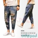 ジーンズ メンズ スキニー 9分丈 デニムパンツ カジュアル ダメージ クラッシュ デニム スキニーパンツ 大きいサイズ チ ブルー ボトムス メンズデニム