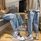 デニムパンツ メンズ ゆったり 折裾 ロールアップ ボトムス カジュアル リラックス 韓国ファッション メンズズボン 超快適 無地 春夏