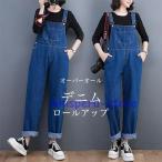 デニムオーバーオール レディース サロペット レトロ サロペットパンツ ロールアップ デニム オールインワン カジュアル ゆったり オーバーオール