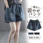 デニム ショートパンツ レディース ボトムス ハイウエスト ポケット 短パン ボトムス 半ズボン カラバリ 無地 カジュアル ワイド ゆったり 着痩せ