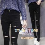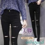レギンスパンツ レディース スキニーパンツ ウエストゴム ダメージ ストレッチパンツ ボトムス 美脚 伸びる 楽ちん ハイウエスト 無地 美尻