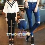 スキニー ジーンズ レディース デニム パンツ ストレッチ アンクル丈 9分丈 10分丈 ダメージ クラッシュ
