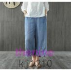 デニム レディース ジーパン ジーンズ ガウチョパンツ ガチョウ風 ガウチョパンツ レディース デニムパンツ ダメージ加工 美足 美尻