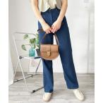 ジーンズ デニム デニムパンツ 美脚デニム風ワイドパンツタック入りパンツ レディース