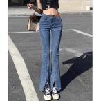 ジーンズ デニム デニムパンツ Y2K 美脚ハイウエスト 裾スリットフレアデニムパンツ レディース