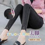 デニム スキニーパンツ レディース レギンスパンツ 黒 ボトムス ダメージジーンズ 美脚 無地 ウエストゴム オールシーズン 極伸び 秋服 可愛い
