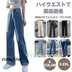 デニムパンツ レディース ジーンズ ズボン ボトムス ハイウエスト ロング丈 カシュアル 体型カバー ゆったり 美脚