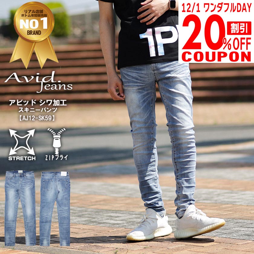 【告知 12/1 激熱20%OFFクーポン!】スキニーパンツ オシャレ メンズ スキニー ジーンズ 薄色 スリム ストレッチ 美脚 大人カジュアル 春夏 秋冬 デニム Avid Jeans aj12-sk59