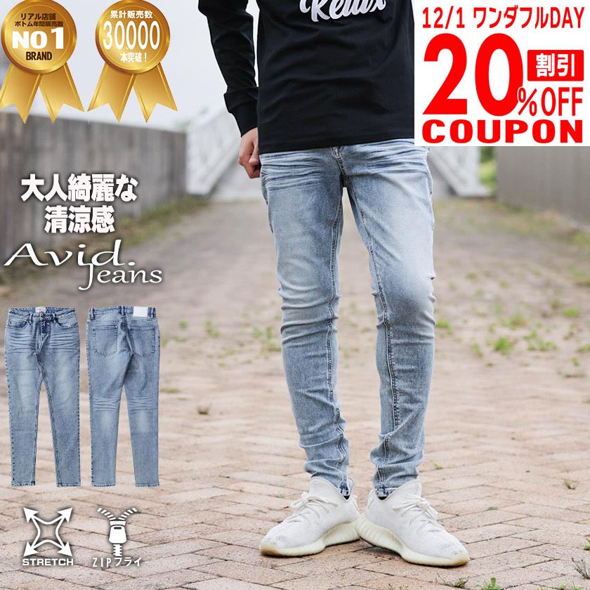 【告知 12/1 激熱20%OFFクーポン!】スキニーパンツメンズ オシャレ スキニー ジーンズ 薄色 スリム ストレッチ 美脚 細身 タイト カジュアル 春夏 秋冬 デニム Avid Jeans aj13-sk65
