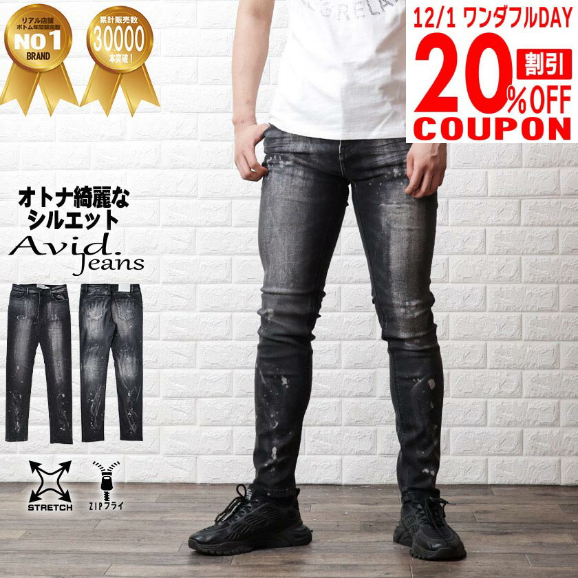 【告知 12/1 激熱20%OFFクーポン!】スキニーパンツ メンズ デニム スリムジーンズ 細身 ストレッチ タイト ペンキ風加工 美脚 カジュアル 春夏 秋冬 Avid Jeans aj13-sk68