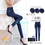 スキニーデニムパンツ レディース ハイウエスト デニムジーンズ 無地 ストレッチ ジーパン 脚長 ジーパン 細見え