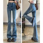デニム フレアパンツ 秋物 レディース デニムパンツ フレア デニム レディースパンツ カットオフ スーパーストレッチ ブーツカット ジーンズ 脚長パンツ 20代