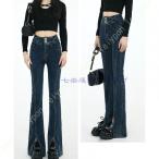 デニム フレアパンツ 秋物 レディース デニムパンツ フレア ベルボトム ブラックデニム レディースパンツ ストレッチ ブーツカット ジーンズ 脚長パンツ 20代
