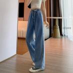 ワイドパンツ デニムパンツ レディース デニムワイドパンツ ロングパンツ ウエストゴム 大きいサイズ 脚長効果 ジーンズ ボトムス ズボン 春物 秋服 ガーリー