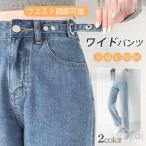 ワイドパンツ デニム ハイウエスト ウエスト調節可能 レディース ジーンズ デニムパンツ 春夏 きれいめパンツ 美脚 大きいサイズ 脚長効果 着痩せ おしゃれ